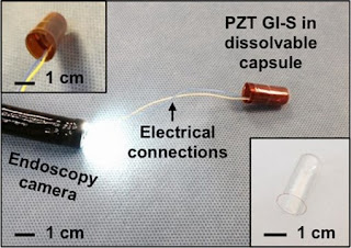 The ingestible sensor that the researchers designed for this study is 2 by 2.5 centimeters and can be rolled up and placed in a capsule that dissolves after being swallowed.This type of sensor could make it easier to diagnose digestive disorders that impair motility of the digestive tract, which can result in difficulty swallowing, nausea, gas, or constipation.Doctors could also use it to help measure the food intake of patients being treated for obesity.