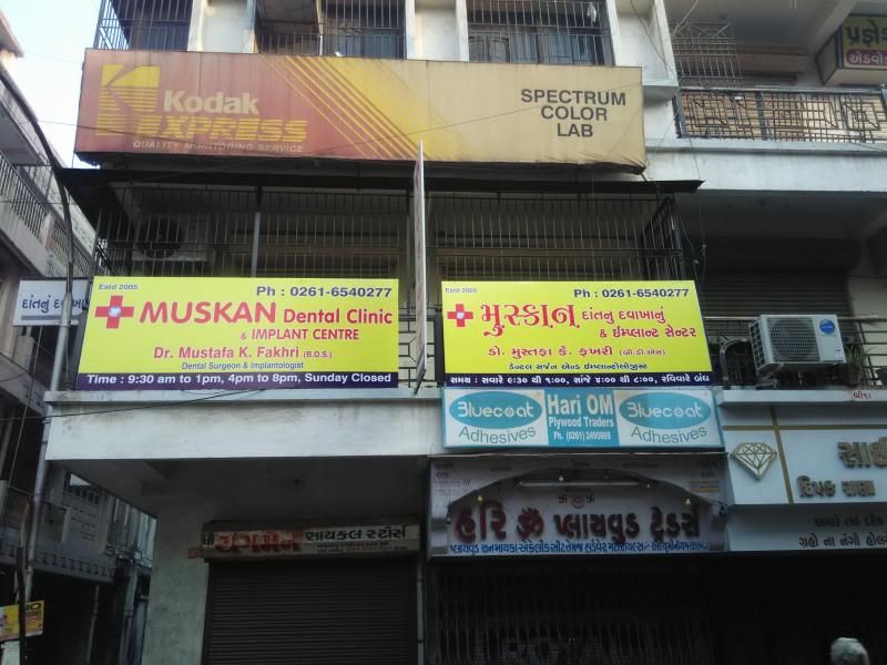 Muskan Dental Clinic is located just at Zampa bazar,Karwa road which is located in Central part of surat city. General Medical Practitioners, Medical Store and Pathoogy lab in surrounding (same Building)