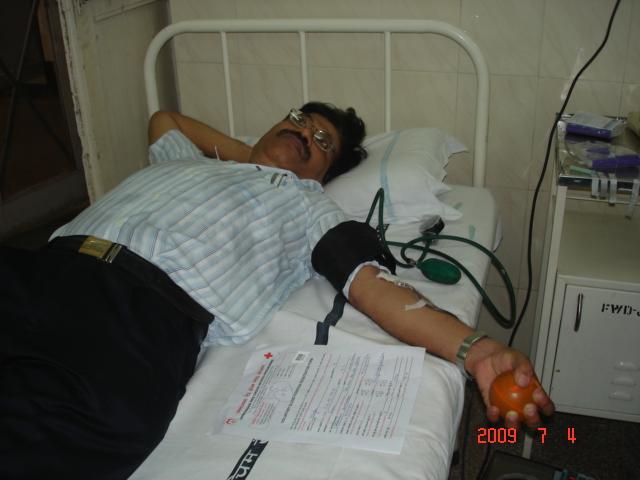 Dr SK Nigam donating blood